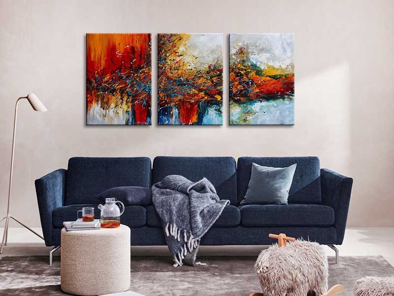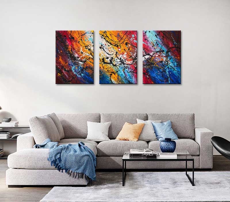 150x70 cm. - 3 x ( 50x70cm ) - zichtmaat van dit drieluik schilderij = 160x70cm